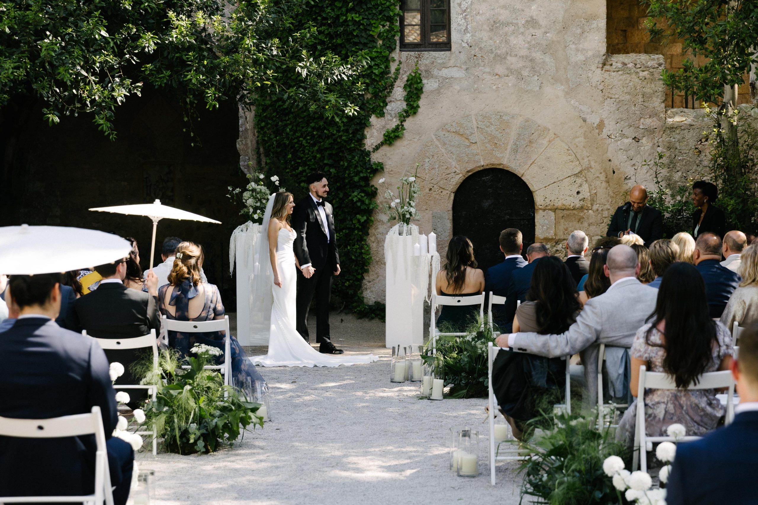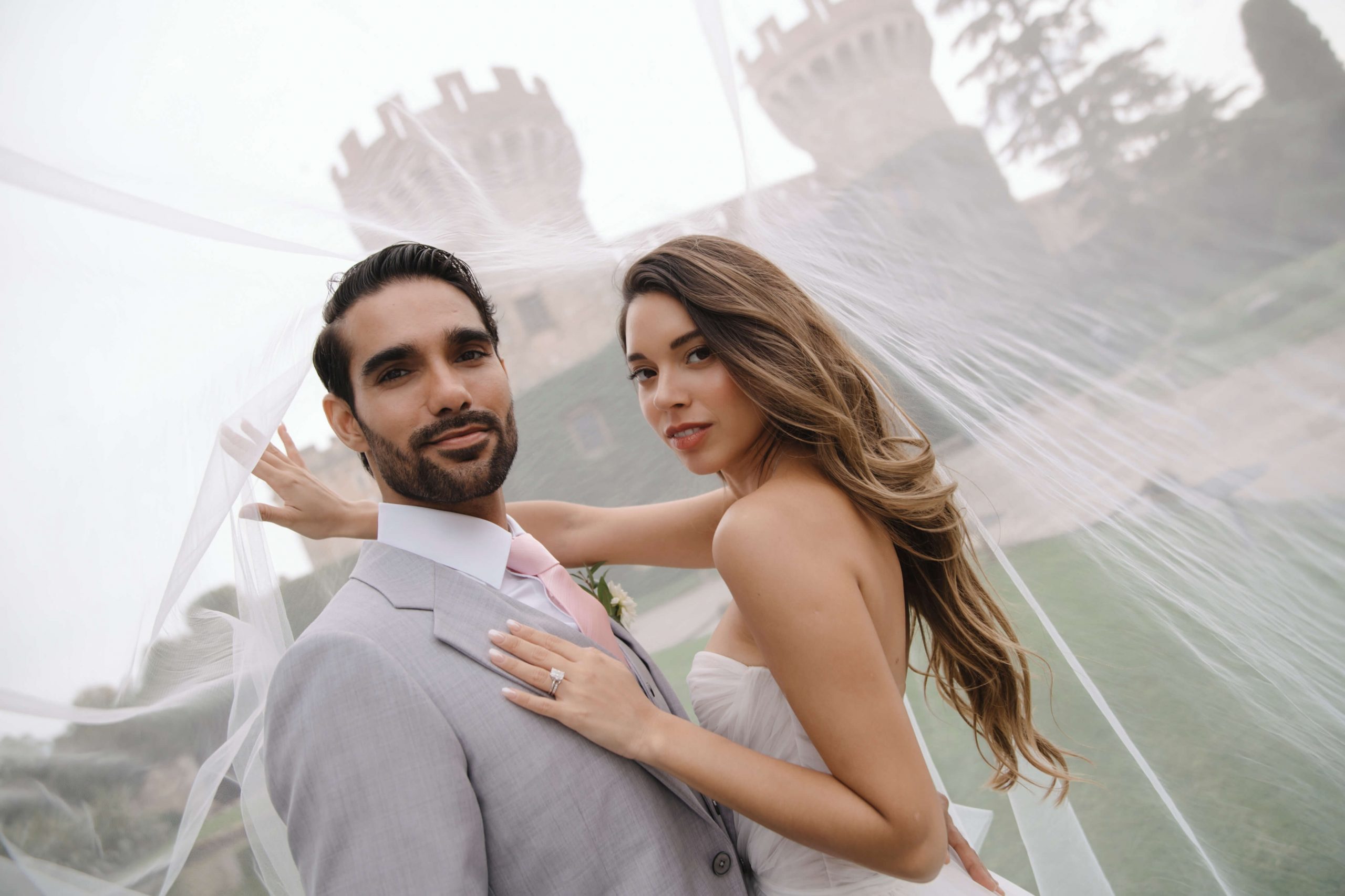 Ricardo y Nicole viajaron desde California para celebrar su boda el 13.10.2023 en el increíble castillo de La Baronia. El estilo fue completamente romántico predominando los colores claros y detalles como candelabros.